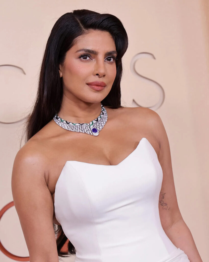 Otras piedras preciosas desfilaron por la alfombra roja de los Oscar de la mano de actrices como Priyanka Chopra, que apostó por un impresionante collar de diamantes, zafiros y esmeraldas de Bvlgari, de la nueva colección de alta joyería Eclettica. y de Alba Baptista, con una gargantilla de oro blanco de 18k adornada con zafiros de 27.30 quilates y diamantes de 4.84 quilates, de la colección Precious Lace de Chopard.