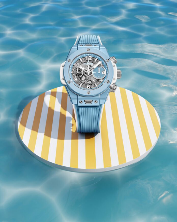 El Big Bang Unico Sky Blue reúne tres características esenciales de Hublot: el icónico modelo Big Bang, su movimiento de manufactura Unico y la cerámica, el material favorito del relojero suizo