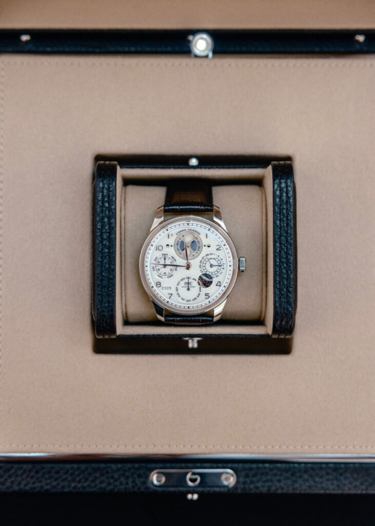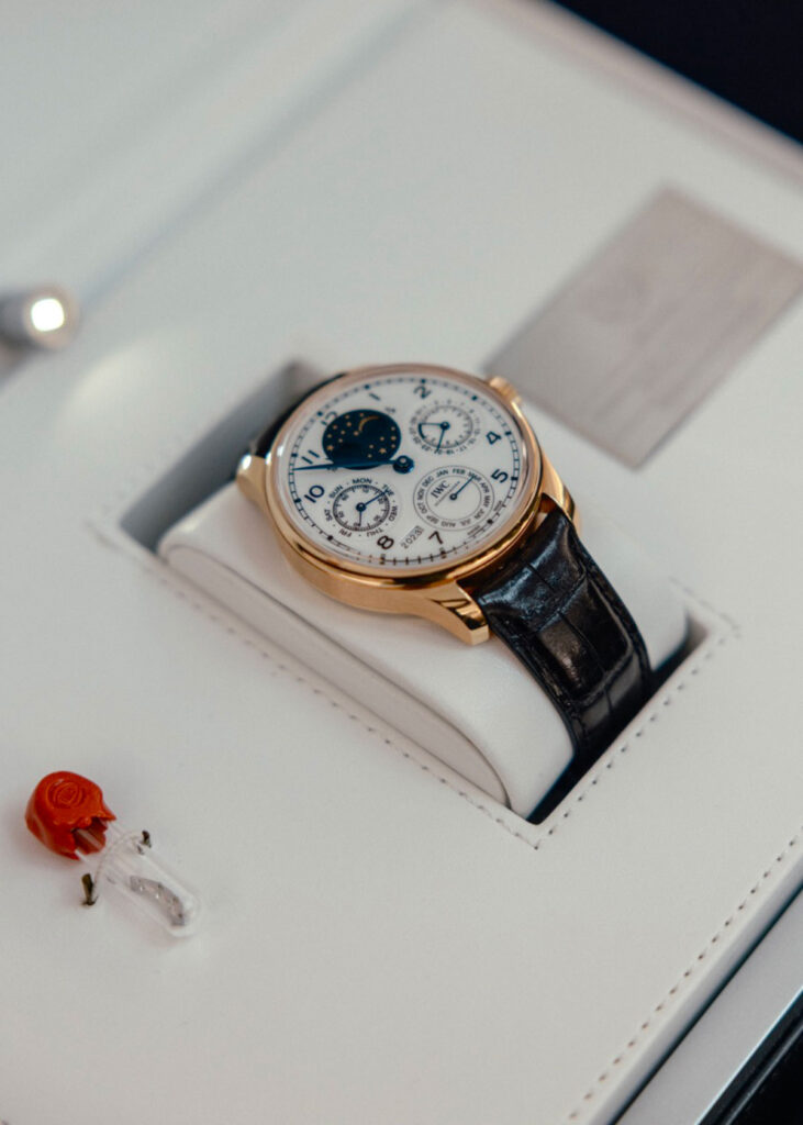 Entre las piezas expuestas destacan algunas de las más admiradas creaciones de la casa IWC, como el IWC Portugieser Eternal Calendar, galardonado con el Aiguille d’Or al mejor reloj del mundo en 2024, capaz de mostrar las fases lunares durante 45 millones de años sin necesidad de ajuste; el IWC Portugieser Tourbillon Rétrograde Cronógrafo, elaborado en Armor Gold, una aleación exclusiva y más resistente que el oro tradicional; y el IWC Portugieser Tourbillon y Calendario Perpetuo, una obra maestra que combina dos complicaciones técnicas con un diseño atemporal.