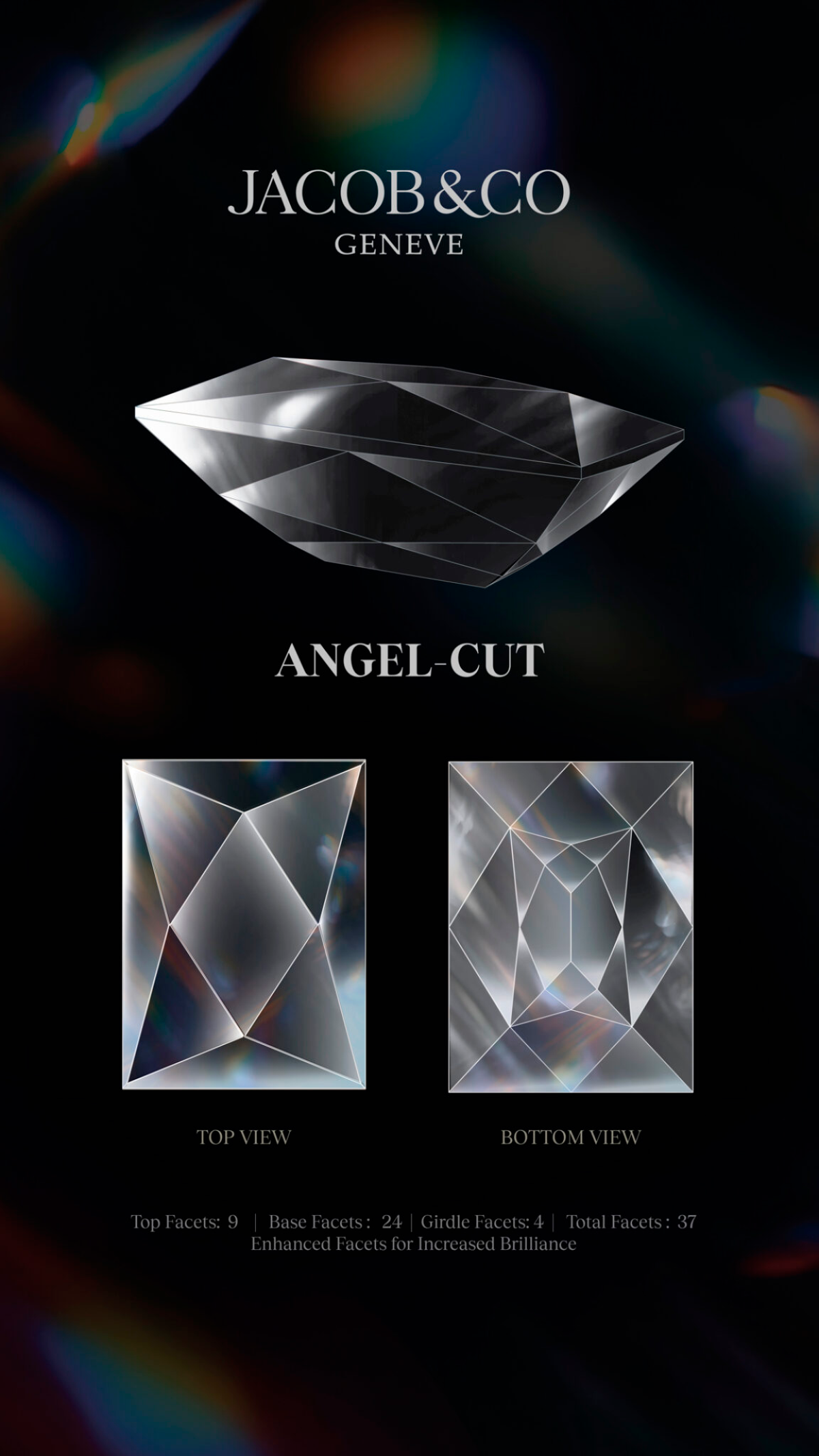 El Angel Cut no es solo un avance técnico, sino también una creación profundamente simbólica. Su nombre rinde homenaje a Angela, esposa del fundador Jacob Arabo, y su estructura incorpora 37 facetas, en referencia a los años de matrimonio de la pareja. Este detalle convierte el corte en una fusión entre innovación gemológica y narrativa emocional, donde la geometría se convierte en un lenguaje de homenaje y permanencia.