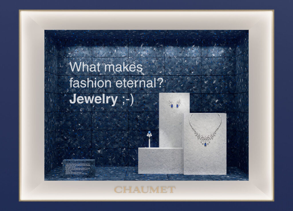 La sostenibilidad, trazabilidad y ética están transformando el lujo consciente hasta convertirse en parte de la filosofía de esta industria. En este escenario y con motivo de la Semana de la Moda de París, Chaumet presenta unos exclusivos escaparates que rinden un divertido homenaje a la moda circular.