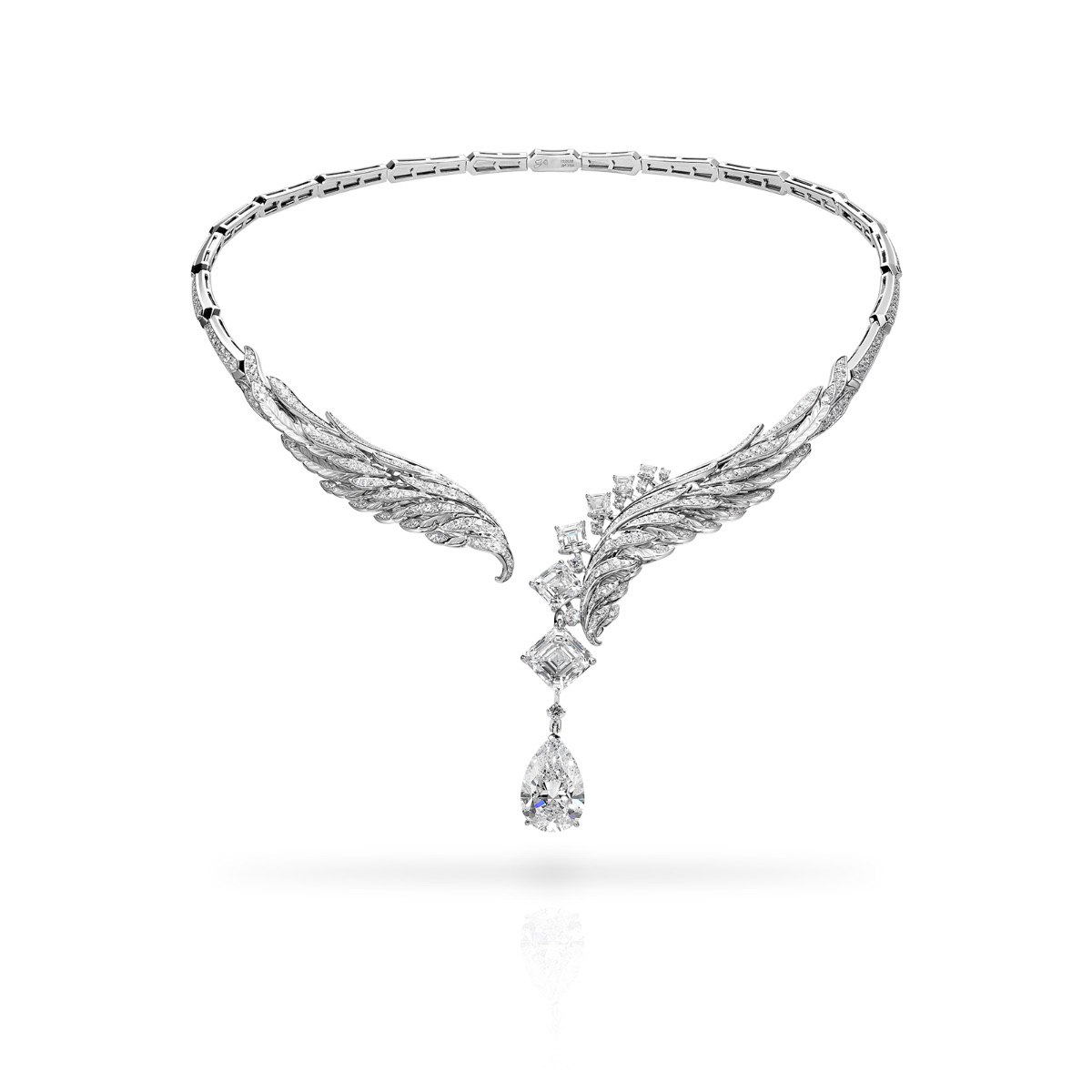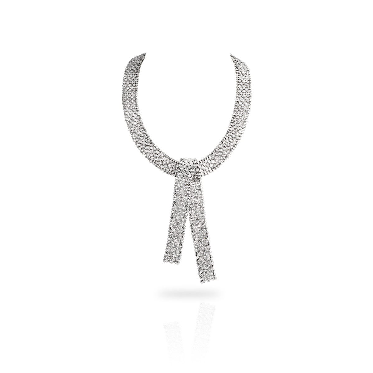 Collar Mosaico. El collar Mosaico, fabricado en oro blanco de 18 quilates, pertenece a la colección de Alta Joyería de Carrera y Carrera y cuenta con 576 diamantes.
