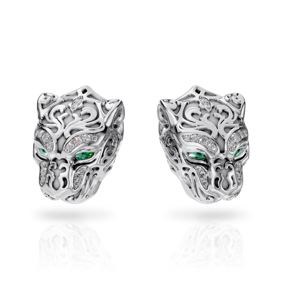 Pendientes Zodaria. Pendientes de oro blanco de 18 quilates, pertenecientes a la colección Vida, con 32 diamantes y 4 esmeraldas.
