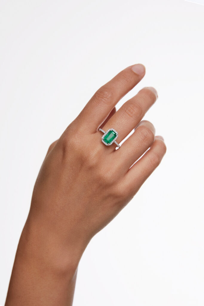 Además, las esmeraldas de esta selección destacan por poseer un equilibrio impecable entre intensidad cromática, pureza y talla. La estructura de cada anillo se adapta a las proporciones exactas de la piedra, asegurando una armonía visual y técnica que potencia su belleza natural. Las gemas provenientes de esta zona geográfica tienden a presentar menos inclusiones, lo cual acentúa la exclusividad de su carácter; también destacan por la profundidad e intensidad de su color, resultado de la singular composición mineral de estos valorados yacimientos.