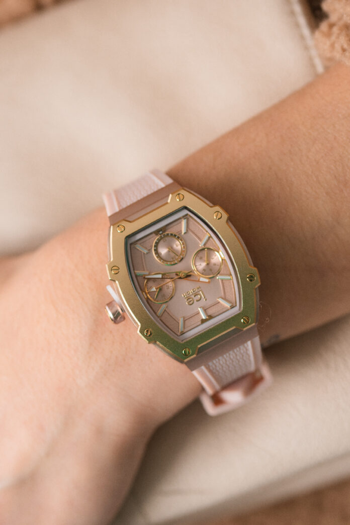 ICE boliday es, ante todo, un diseño para recordar, curvado sin ser redondo; generoso y con una caja “tonneau”. Destaca por su juego de superficies, sus agujas y segundero, su esqueleto de cristal y sus índices de bastón bicolor, delicadamente biselados, así como por su movimiento multifunción japonés Miyota. Un diseño, sin duda, repleto de detalles.