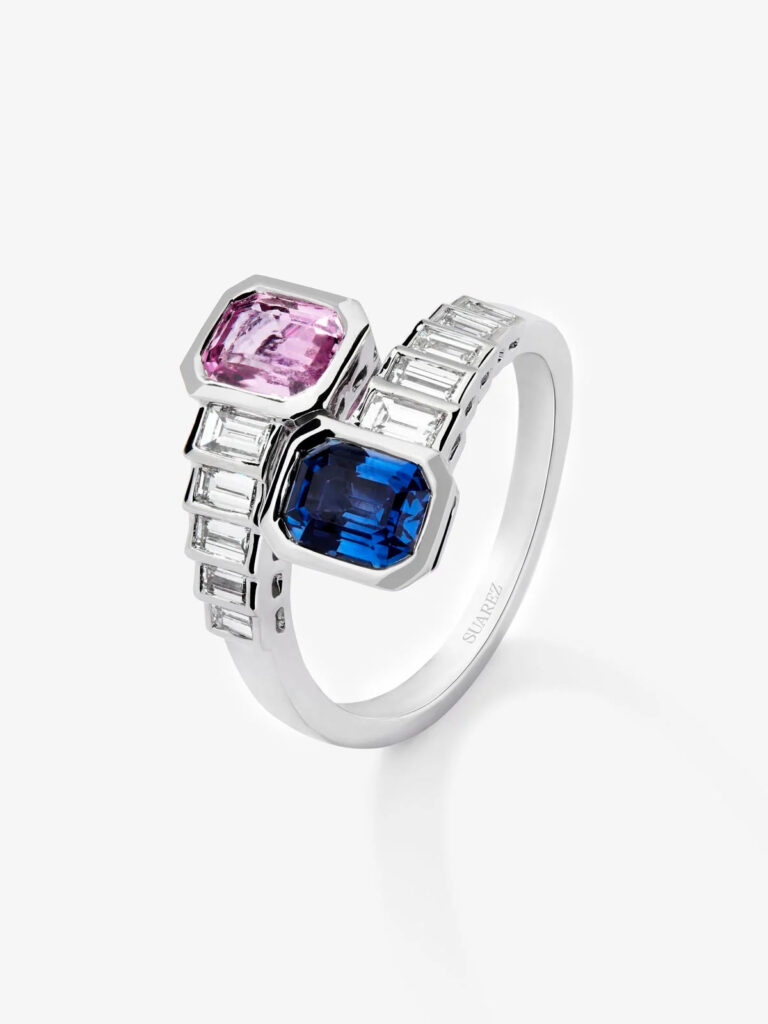 En 2026, estos códigos también vuelven. Los cluster rings -anillos con agrupaciones de piedras- dan paso a la elección de piedras preciosas de color o diamantes fancy entendiendo que estos también pueden formar parte del universo nupcial. Los tonos champagne, gris humo o rosa empolvado están conquistando los escaparates más sofisticados. Junto a ellos, los zafiros, morganitas y esmeraldas pintan una paleta que habla de personalidad y de emociones. Combinados con diamantes o por separado, esta tendencia no pasará desapercibida.