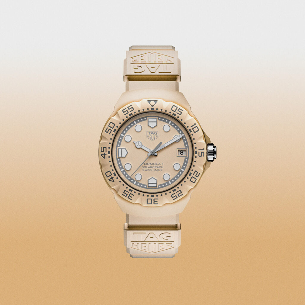 El TAG Heuer Formula 1 38 mm Solargraph, con esfera beige opalina y edición limitada a 3.500 ejemplares, irradia una calidez discreta. Su armoniosa paleta de colores recuerda a la elegancia natural de las superficies iluminadas por el sol, donde los sutiles contrastes realzan la geometría arquitectónica de los escudos y la fresca minutería gris. El resultado es una presencia que transmite serenidad y una seguridad inconfundible.