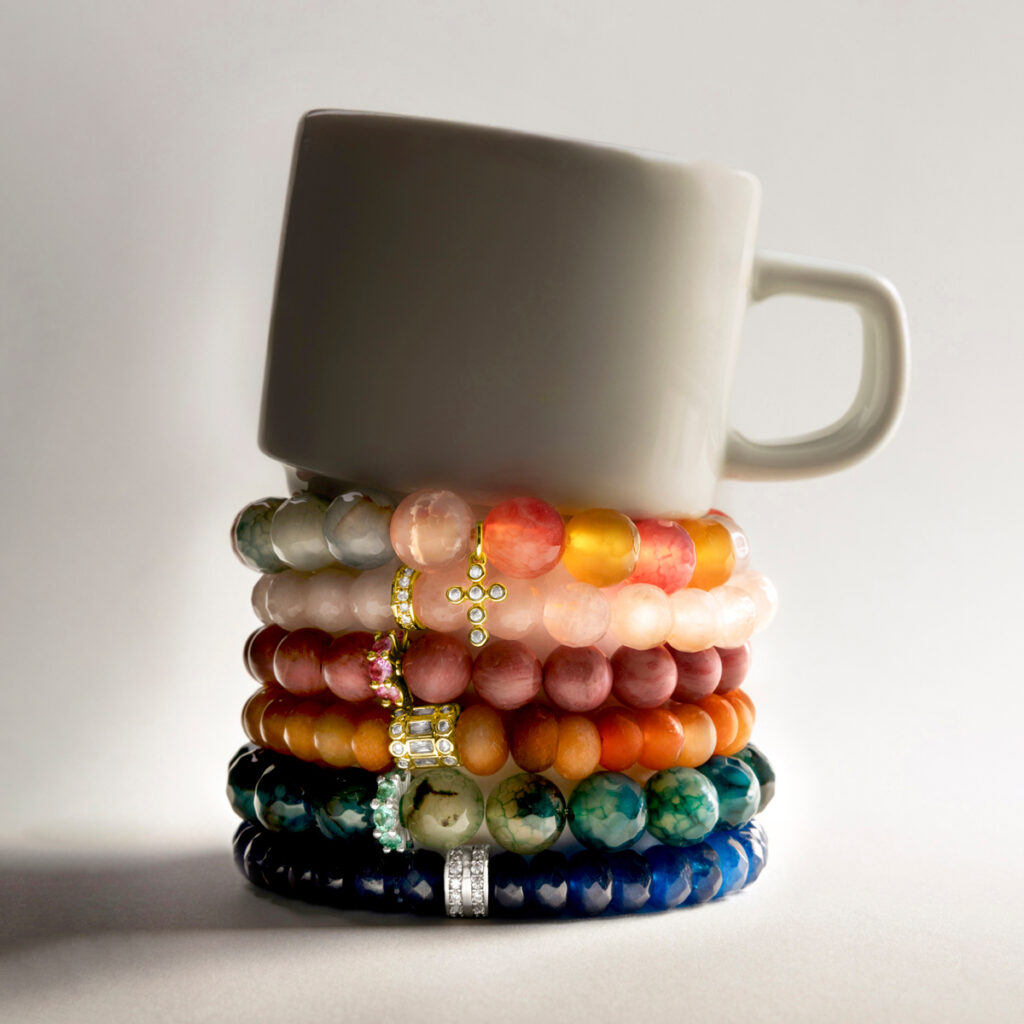 Las pulseras triples de piedras naturales, otro de los sellos inconfundibles de la marca, se reinventan en versiones más ligeras, versátiles y combinables. Desde la intensidad de la hematite hasta la delicadeza de la amatista o el frescor del azul aguamarina, cada modelo refleja el equilibrio entre fuerza y feminidad que define a Luxenter.