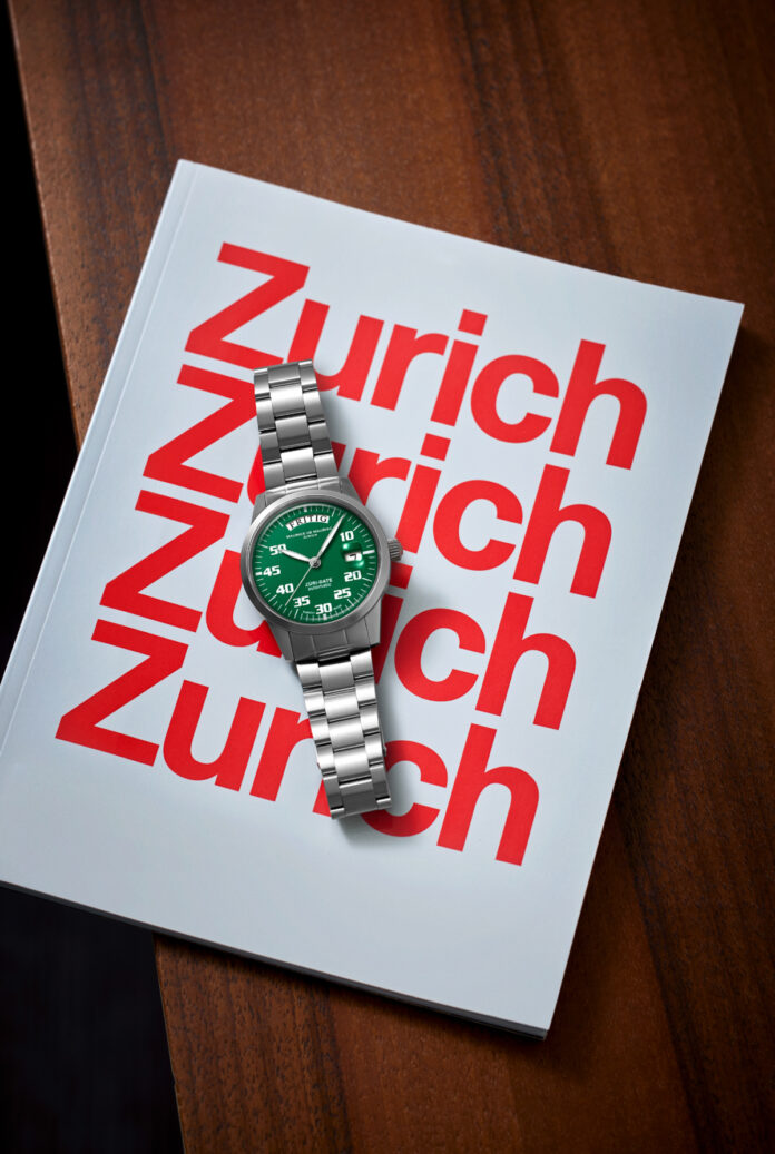 Massimo Dreifuss, también Director de Operaciones, describe el proceso de diseño del nuevo Züri-Date como algo especial: “seguimos subiendo a diferentes tranvías en Paradeplatz, dejando que los colores trabajaran sobre nosotros y cambiándolos ligeramente una y otra vez. Al final habíamos armonizado la estética de los colores del tranvía con nuestra propia estética”. Recuerda que los colores se fijaron alrededor de las 10 de la noche, en el tranvía 8 justo antes de Paradeplatz. Es el tranvía en el que Masha, la hermana de los Watchbros, se desplaza entre la tienda MdM Garage y el icónico estudio de Tödistrasse que sirve como sede de la marca. El tranvía chirrió de alegría en la última curva. Un reloj por lo tanto que no puede ser más Zurich.