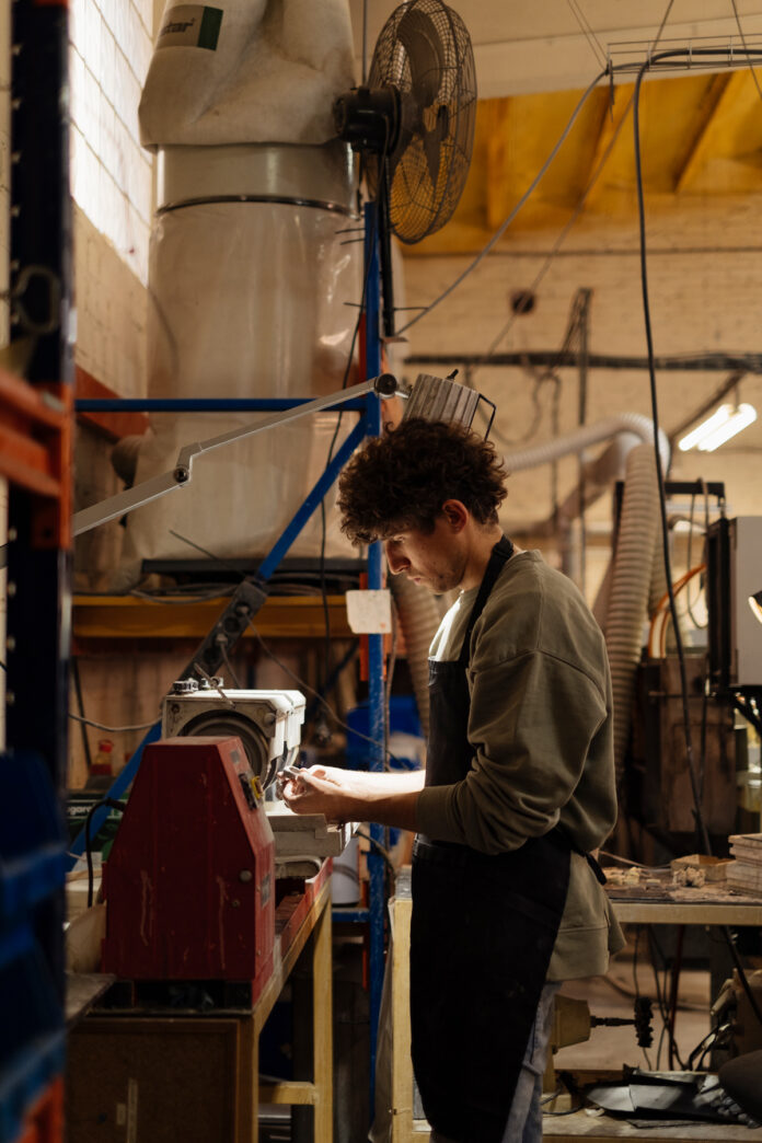Estudié diseño de producto y soy el creador de la marca; aunque llevo un poco todo, cuento con la ayuda de un equipo enfocado a branding, fotografía, marketing y comunicación digital. También soy músico y tengo esa parte artística muy presente. Además, aunque no hay un conocimiento enfocado al mundo joyero, sí está presente la experiencia de esta empresa familiar y del material en cuestión, que se une a esa parte artística propia que me lleva a crear Solka, con las facilidades que me otorga la fábrica familiar en cuanto a maquinaria.