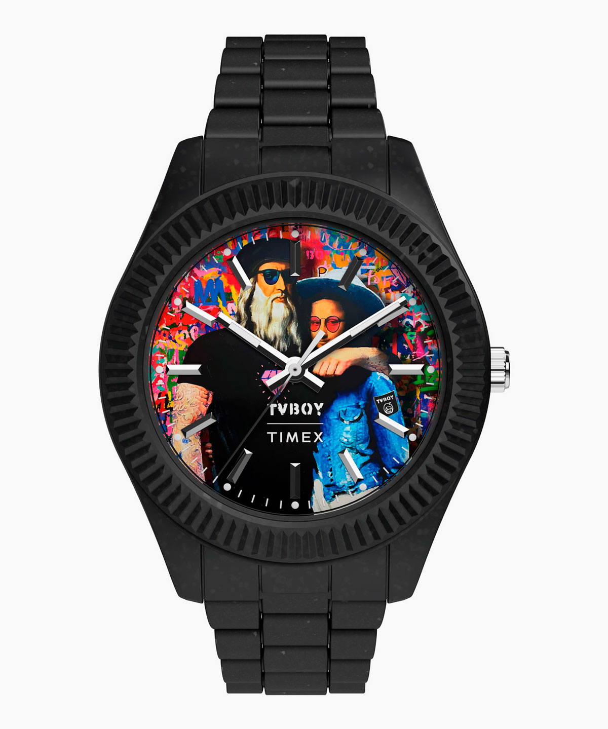 TVBOY, pseudónimo de Salvatore Benintende, es uno de los artistas urbanos más influyentes del panorama actual, con más de 1,3 millones de seguidores en redes sociales. Nacido en Milán y actualmente residente en Barcelona, TVBOY es conocido por sus murales vibrantes que mezclan arte clásico y contemporáneo, siempre transmitiendo mensajes de paz, amor e inclusividad. Su obra más célebre, “Leo & Lisa”, un mural renacentista con un giro moderno ubicado en el aeropuerto de Roma desde 2021, ha servido de fuente de inspiración para esta nueva colaboración con Timex.