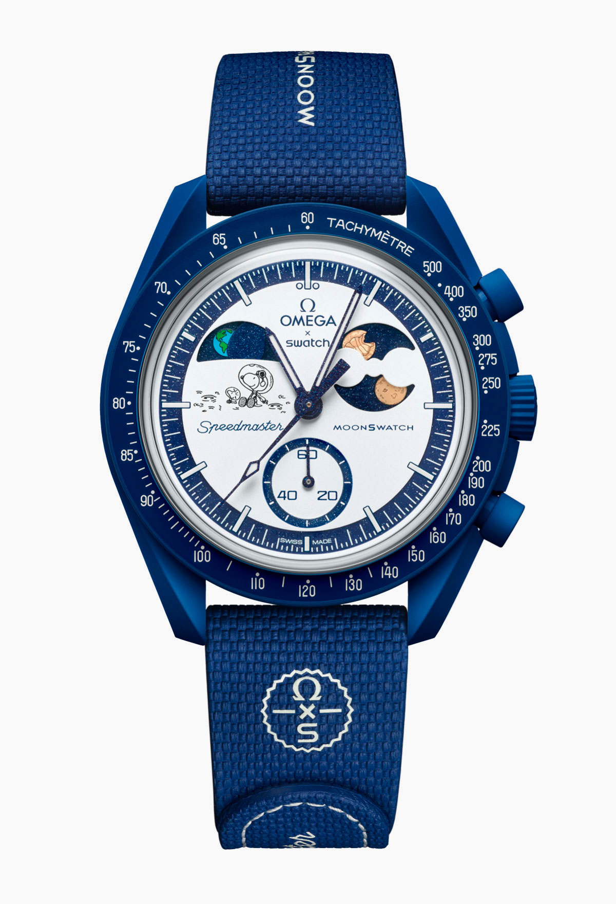 Entre sus características destacan: movimiento de cuarzo con cronógrafo e indicador de fases terrestres y lunares, cristal convexo de origen biológico con la “S” de Swatch grabada en el centro, esfera con índices e indicadores revestidos con Super-LumiNova®, que emite una luz verde intensa y una correa de caucho azul con cierre VELCRO®, acompañada de una segunda correa negra y herramienta de cambio rápido.