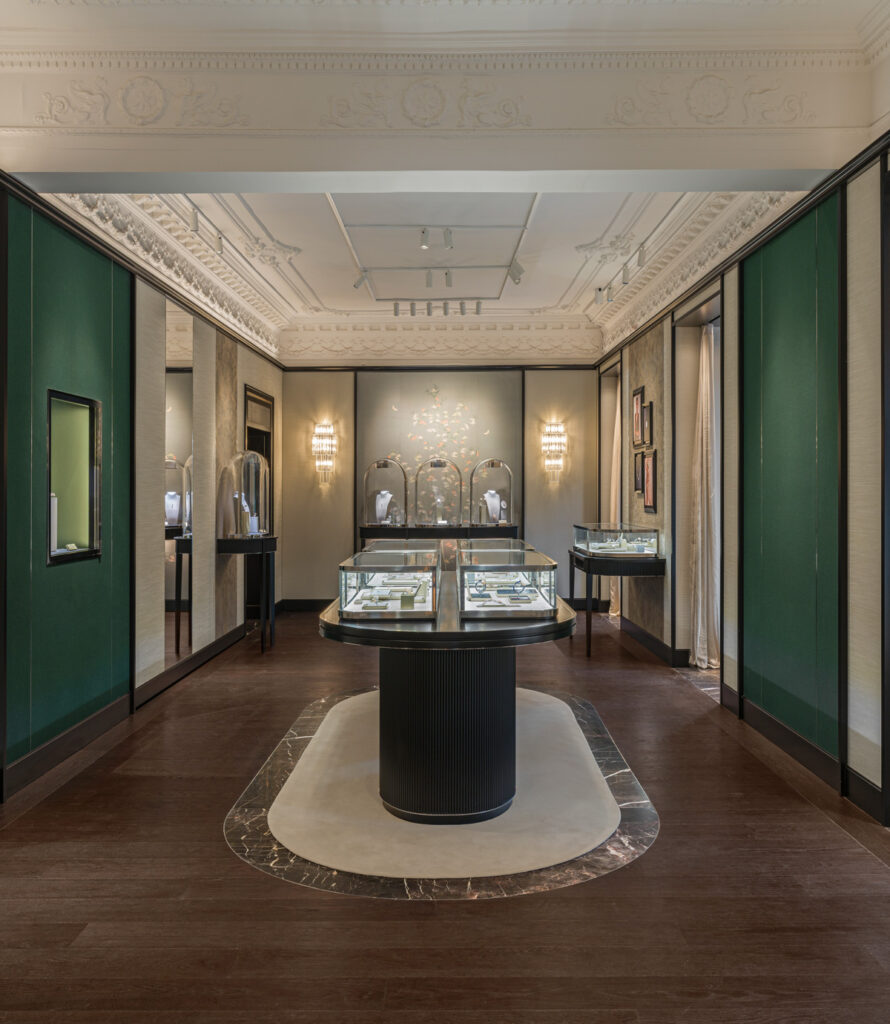 En el corazón de Madrid, este nuevo espacio, con más de 450 metros cuadrados distribuidos en dos plantas, ofrece una experiencia única para los conocedores de la Alta Joyería y la Relojería. Además, la boutique se encuentra en un edificio histórico por lo que sus techos moldurados, la vidriera del primer piso y los grandes ventanales crean en conjunto una atmósfera calidad.