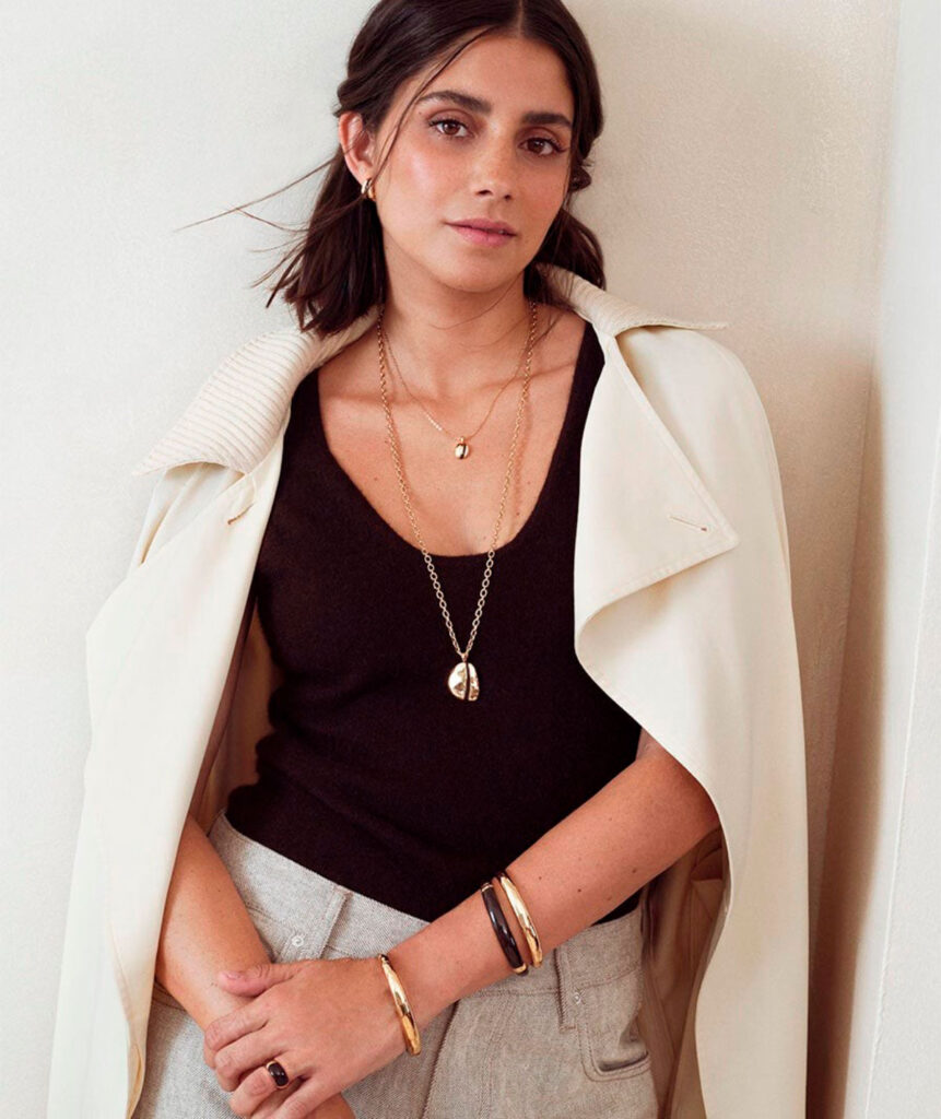 Su trayectoria y su forma de mostrarse han inspirado el diseño de piezas pensadas para acompañar y resaltar lo mejor de cada mujer en su día a día real. Joyas con identidad propia, actuales y versátiles en las que destaca una combinación que marca la diferencia: esmalte marrón y acabado martellé.